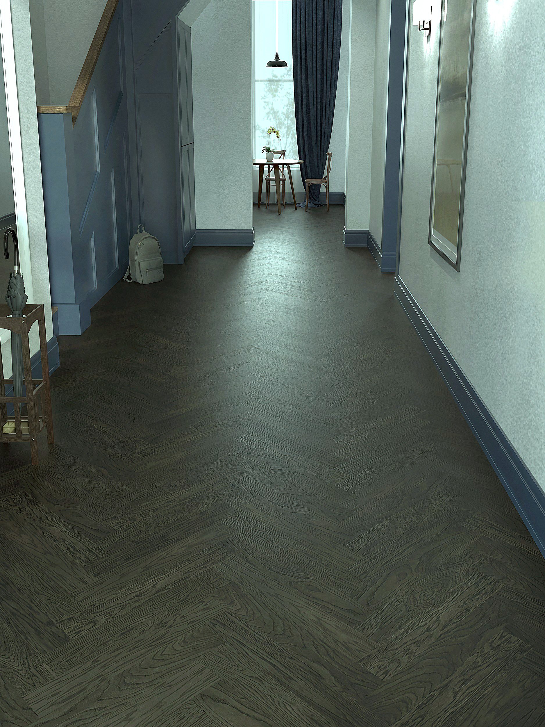 Kalanruotoparketti on ajaton ratkaisu, joka yhdistää klassisen kuvion ja nykyaikaisen viimeistelyn. Antrasiitinharmaa sävy tuo tilaan ainutlaatuisuutta ja harmoniaa, sopien hyvin sekä moderneihin että perinteisiin sisustuksiin.